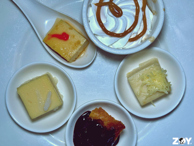The Cassava Flan is in the leftmost side. Starting from 11 o’clock: Leche Flan, Banoffee Shot, Maja Blanca, and Pudding.