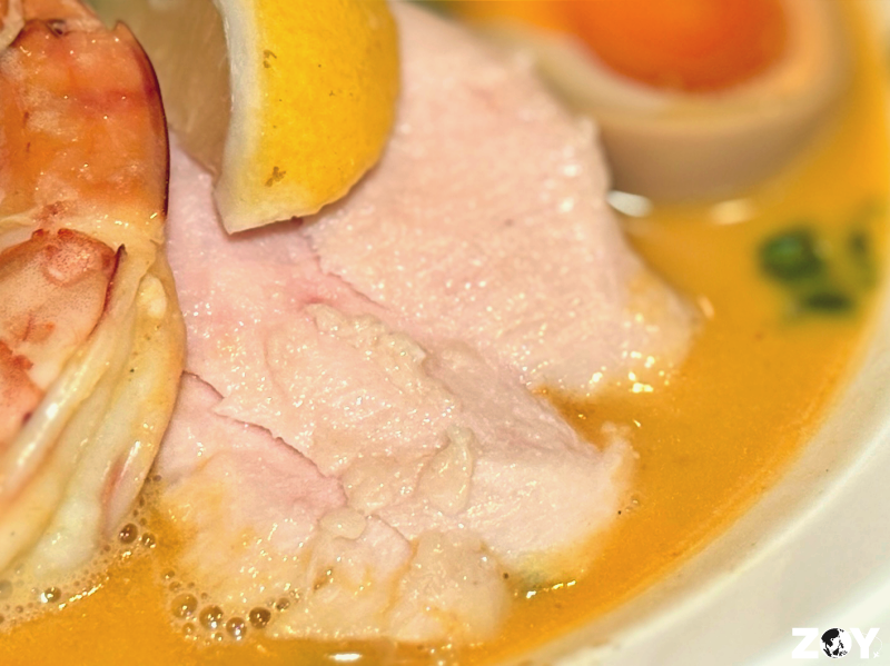 Mendokoro’s Lemak Laksa Ramen uses paitan or chicken-based broth that’s infused with coconut milk and blended with their own version of laksa paste. Then it’s topped with sous vide chicken, aji tamago (ramen egg), and tender ebi (shrimp).