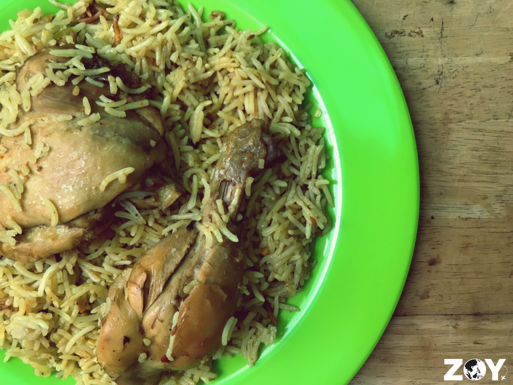 The chicken, composed of leg and thigh, are tender and juicy. There are also chucks of potatoes and green chilies hiding beneath the rice. Just be careful with the chilies because it’s stay-in-the-mouth spicy.